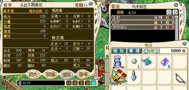 牧羊120弓技能三个10技12技能栏背包全开 360R