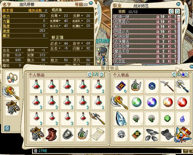 牧羊110剑三个10技能12技能栏背包全开 320R